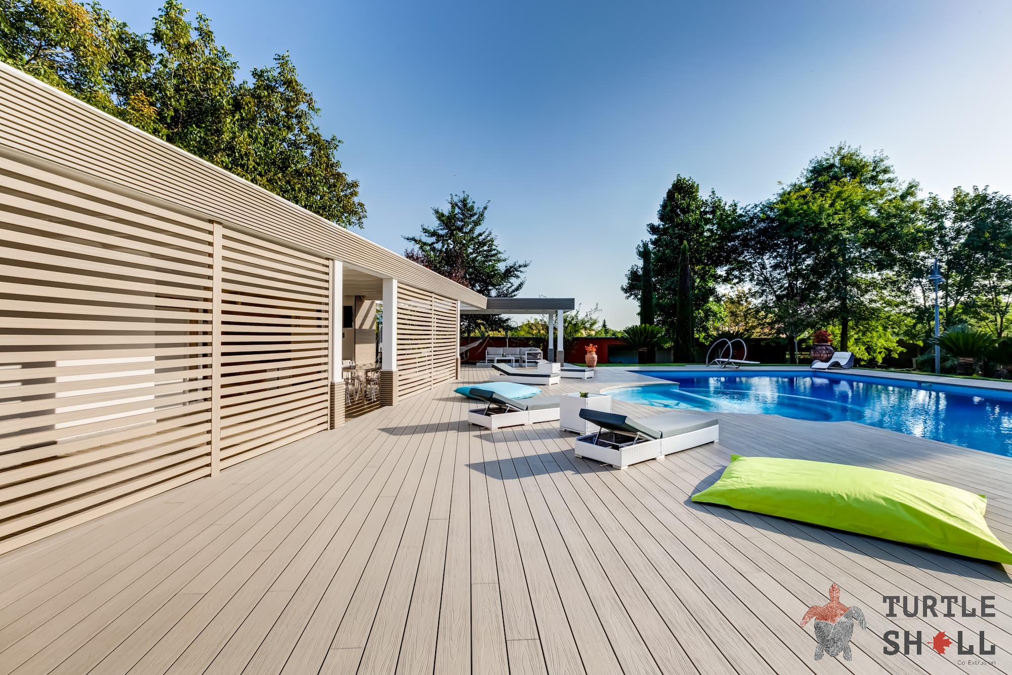Одной из особенностей террасной доски Turtle Shell Round French Oak Co-Extrusion (Dual) (Французский Дуб) является ее пустотелая конструкция, которая делает ее легкой и удобной в укладке. Кроме того, благодаря технологии ко-экструзии, эта террасная доска имеет двойное покрытие, что делает ее особенно устойчивой к воздействию внешних факторов.