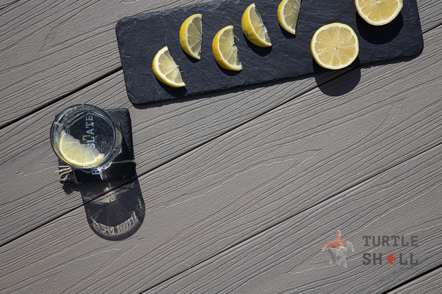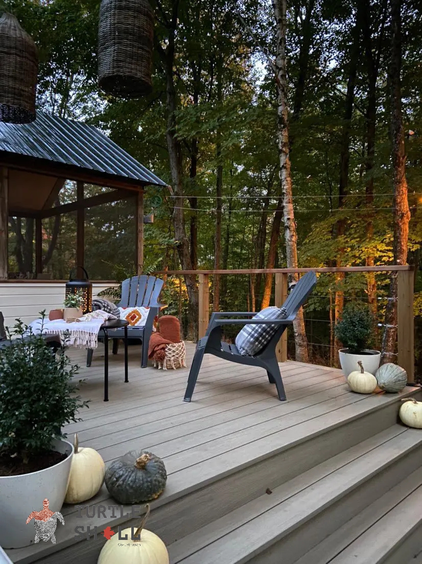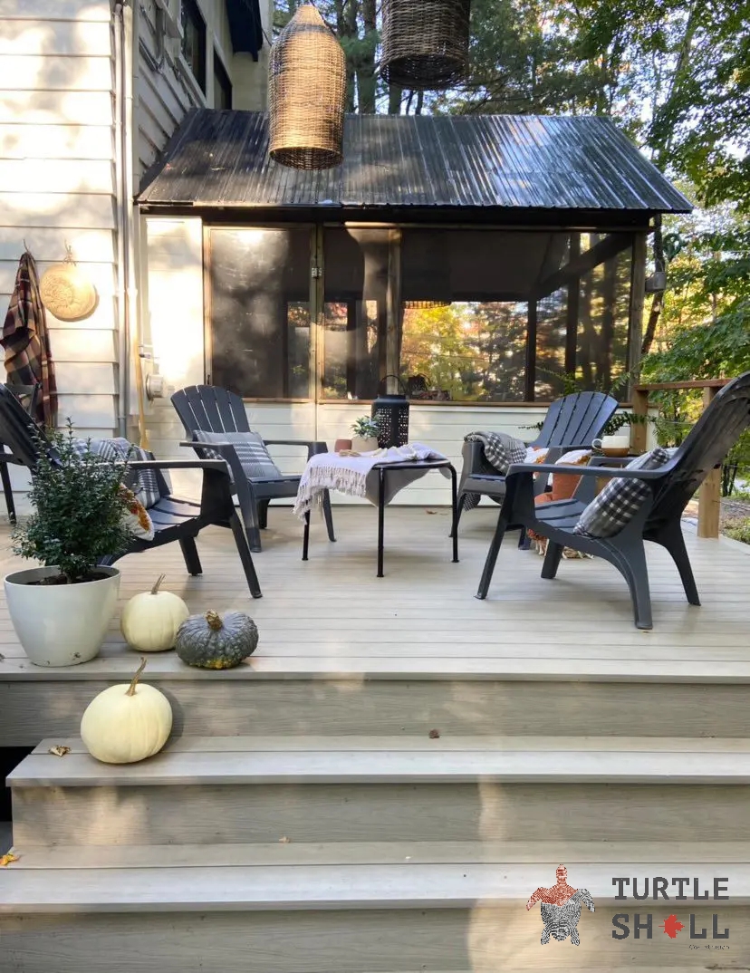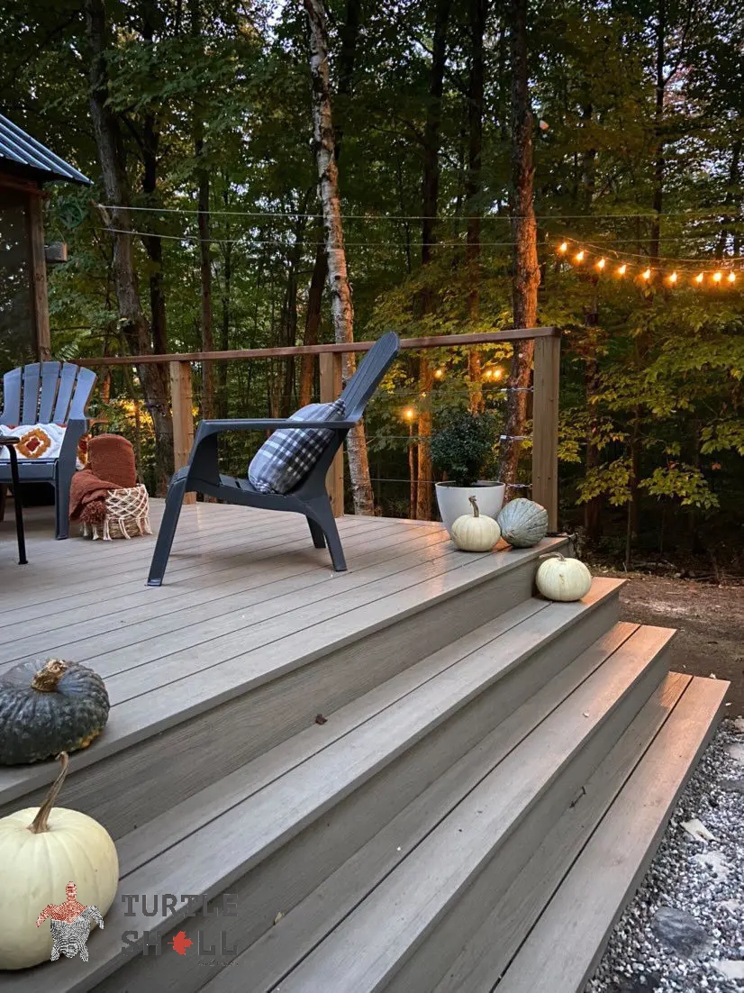 Террасная доска Turtle Shell - 55% древесного волокна, (твердые лиственные породы дуб, ясень, клен, тополь) 40% ПЭВП, 5% добавок, включая краситель.