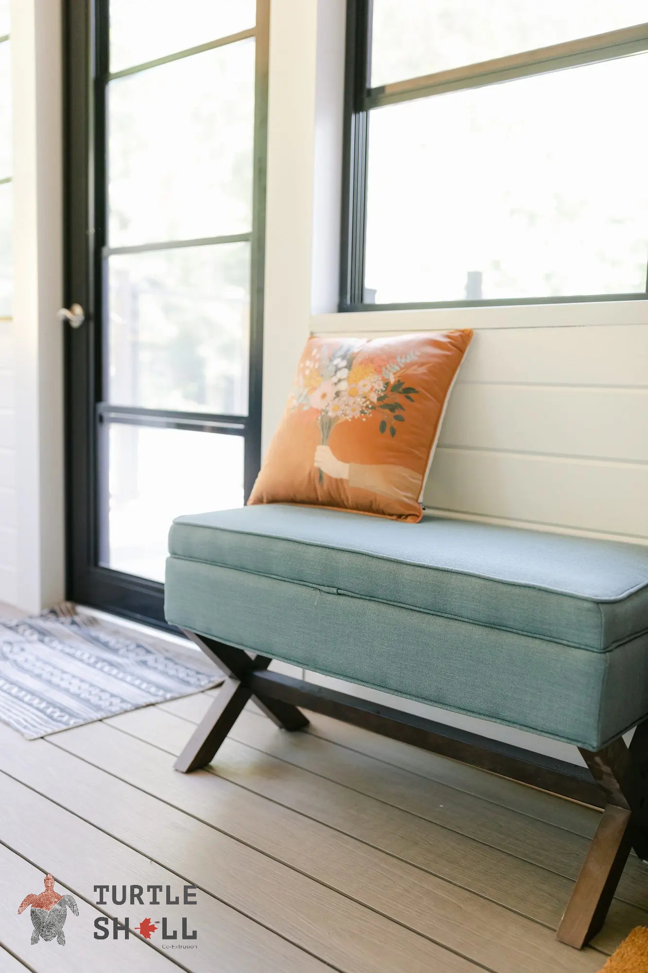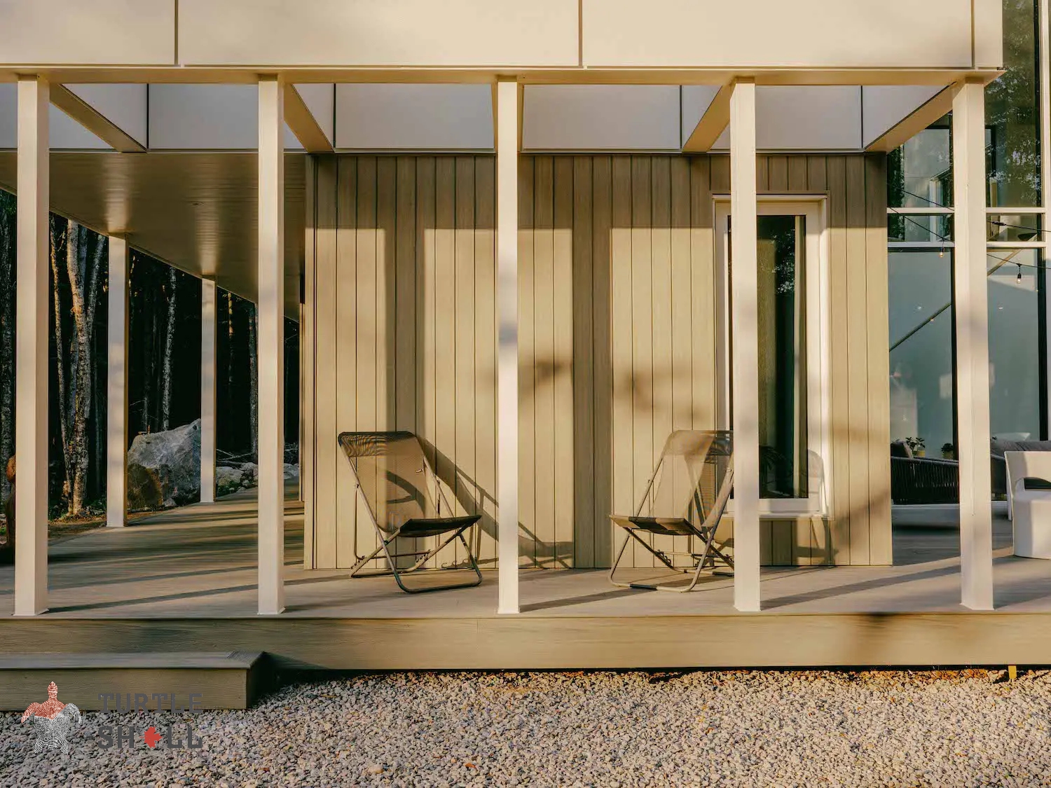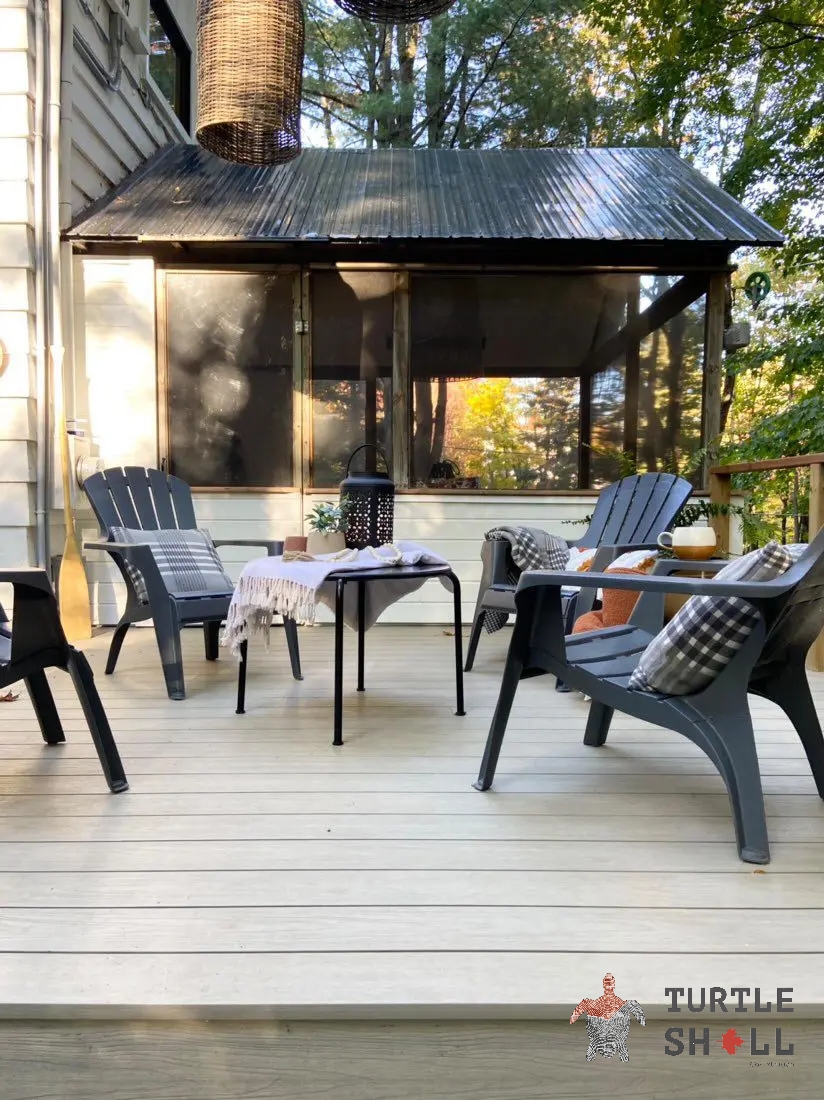 Террасная доска Turtle Shell - 55% древесного волокна, (твердые лиственные породы дуб, ясень, клен, тополь) 40% ПЭВП, 5% добавок, включая краситель.